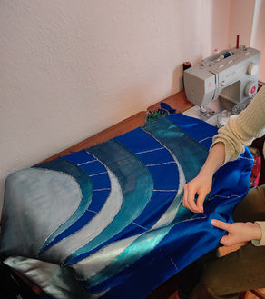 I draw my inspiration from THOMAS SABO's Ocean Vibes jewelry collection, capturing the dynamism of the waves, with embroidered lines, successive shades of blue and silver sparkles that highlight the Woman as free and dynamic Queen of the sea!